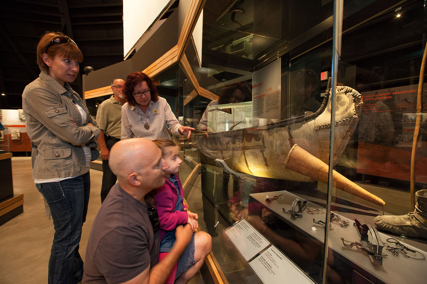L’exposition permanente actuelle, « Wendat Endi’, Nous les Wendat » met en lumière des figures marquantes de la Nation huronne-wendat et leurs rôles de gardiens culturels. À travers leur regard, l’exposition explore les valeurs fondamentales de la Nation et illustre comment, malgré des périodes historiques difficiles, la communauté a su préserver son identité grâce à sa résilience, son adaptabilité et son attachement à ses traditions, tout en restant tournée vers l’avenir.